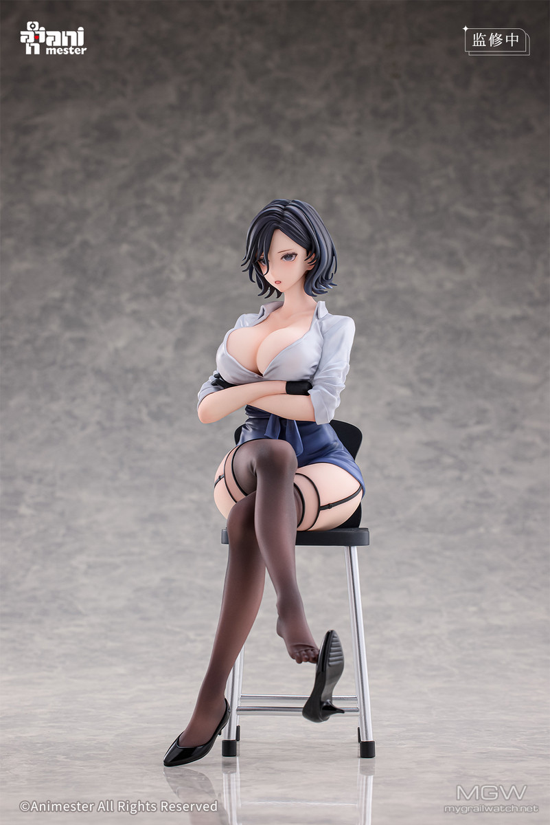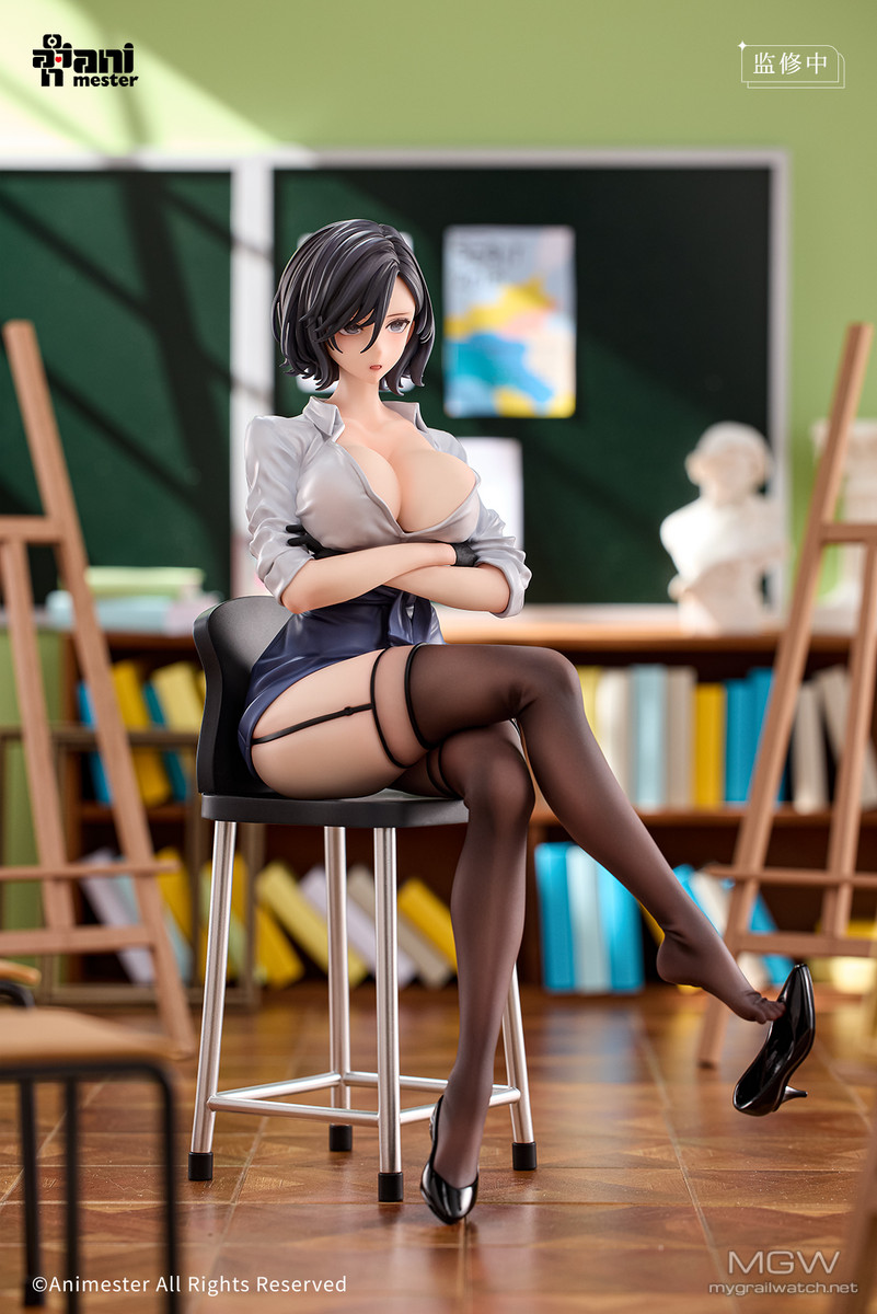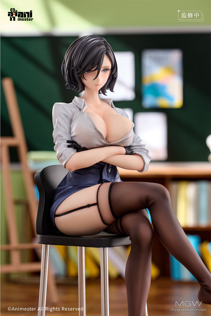 Animester企画製作の下、イラストレーターけそシロウ氏が描いたキャラクター「美術教師の放課後指導 瑠美」が立体化登場! 短く整った髪が彼女の凛とした雰囲気を際立たせ、たくし上げたシャツが細いウエストを強調。 スカートは交差した脚に合わせてさりげなく皺を寄せ、覗くことのできない秘密の領域へと誘うようです。 さらに、初回特典として差し替え用表情パーツが付属予定です!ぜひお見逃しなく!